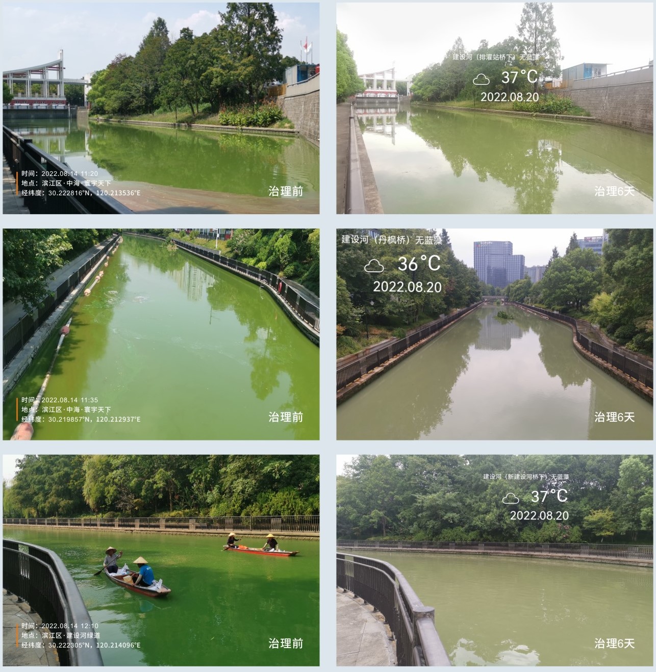 生物鏈治理6天后河道水體效果對比圖